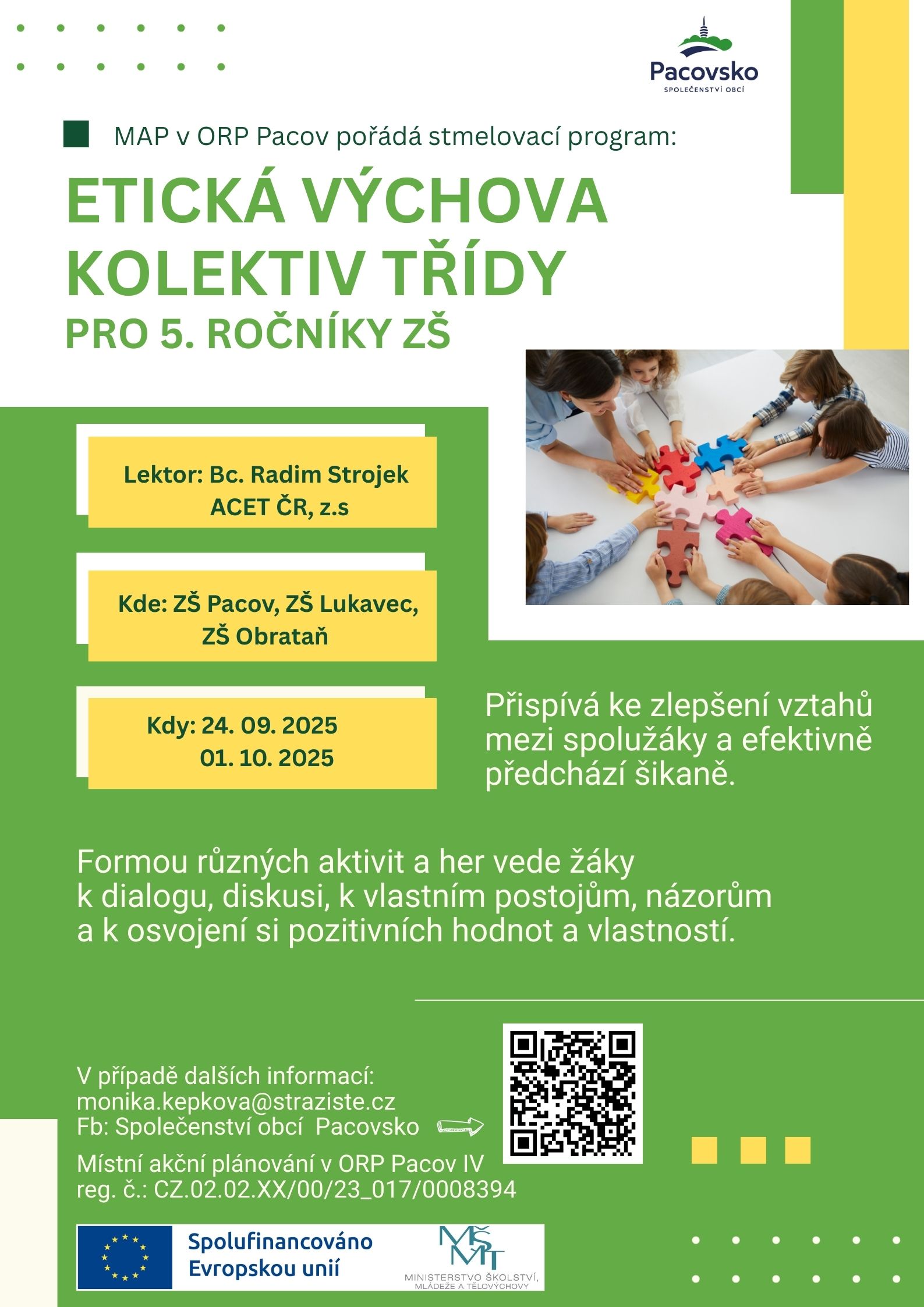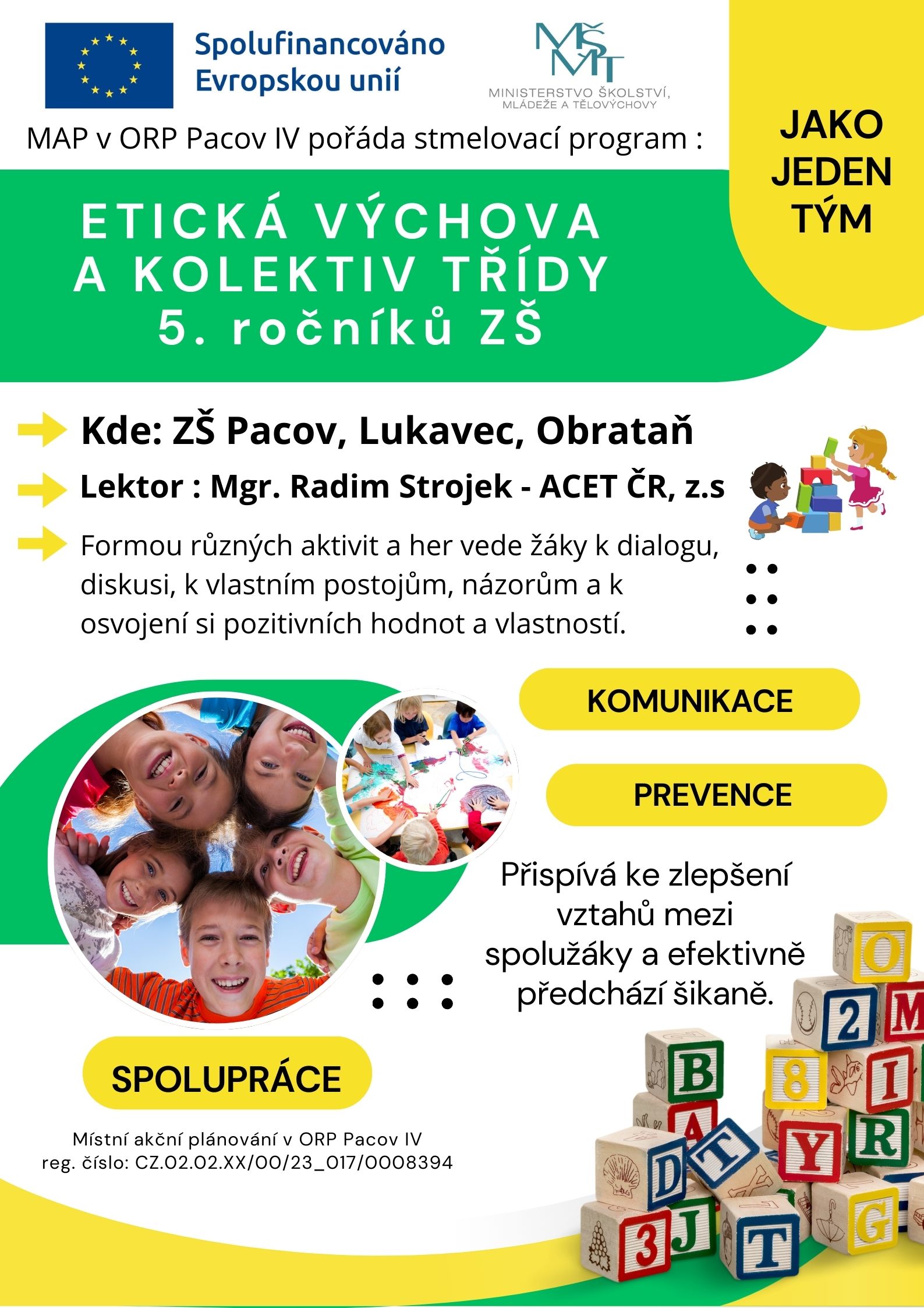 ETICKÁ VÝCHOVA A KOLEKTIV TŘÍDY / stmelovací program pro žáky 5. ročníků ZŠ Pacov, ACET ČR z.s. – Bc. Radim Strojek, PLAKÁT