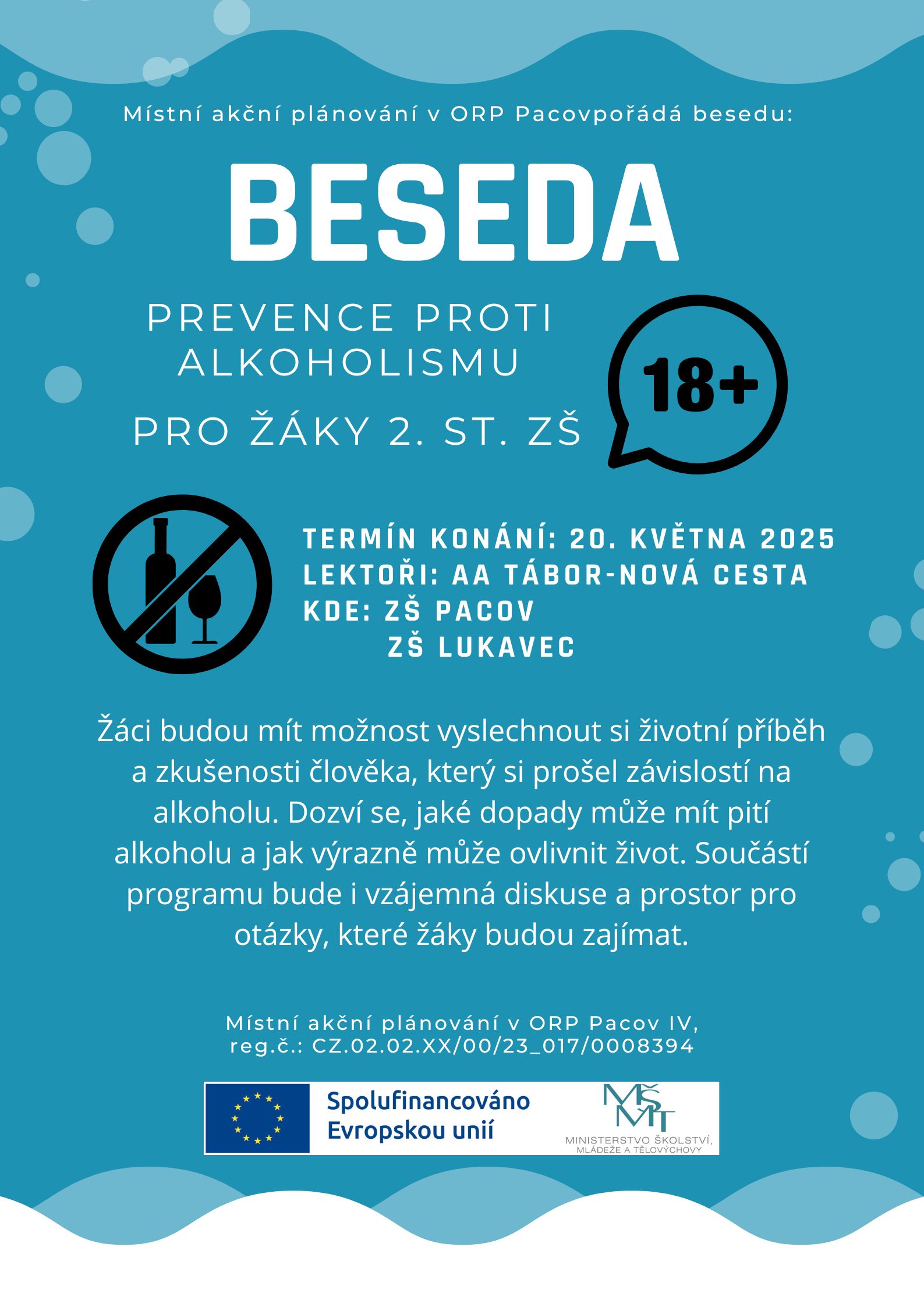 PREVENCE PROTI ALKOHOLISMU/ Beseda pro žáky 2. st. ZŠ, AA – Nová cesta Tábor, PLAKÁT