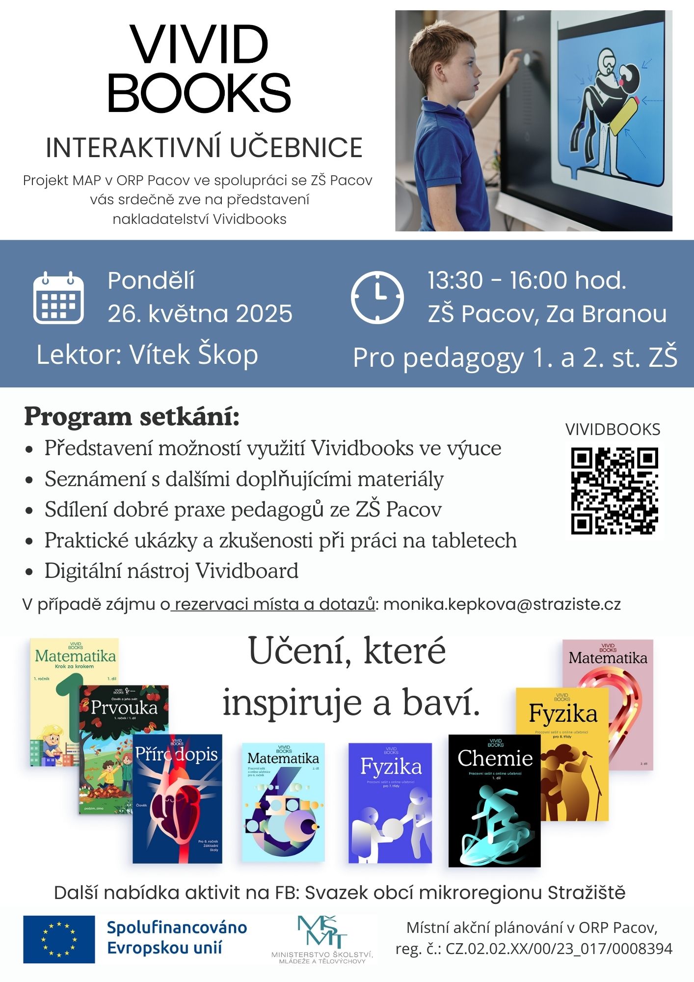 VIVIDBOOKS/ seminář pro sdílení dobré praxe, představení interaktivních učebnic a dalších podpůrných materiálů, od 13.30 hod do 16.00 hod., ZŠ Pacov, Za Branou, PLAKÁT