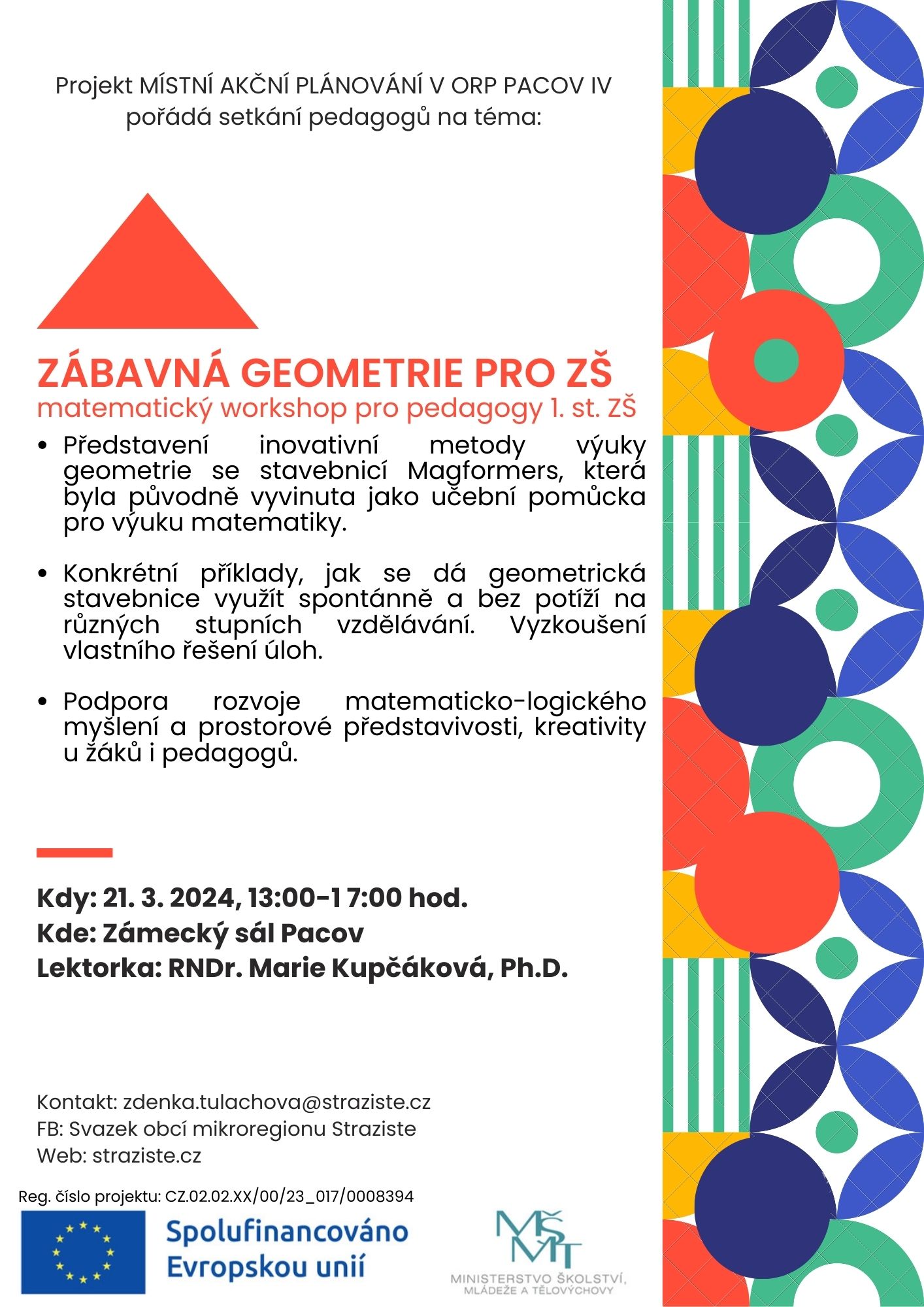 ZÁBAVNÁ GEOMETRIE / matematický workshop, pro pedagogy 1. st. ZŠ, v Zámeckém sále v Pacově, od 13.00 hodin / RNDr. Marie Kupčáková, Ph.D., PLAKÁT