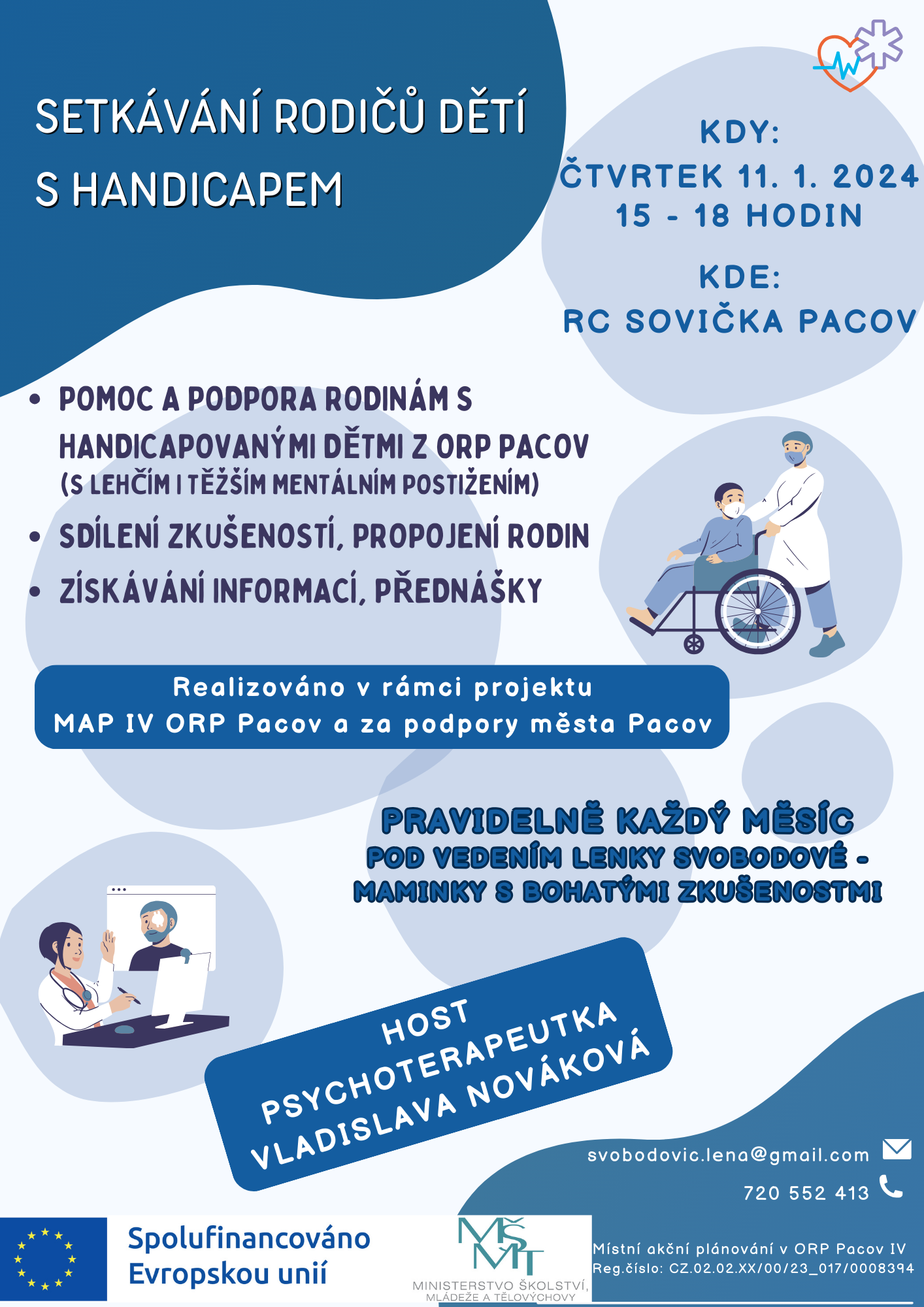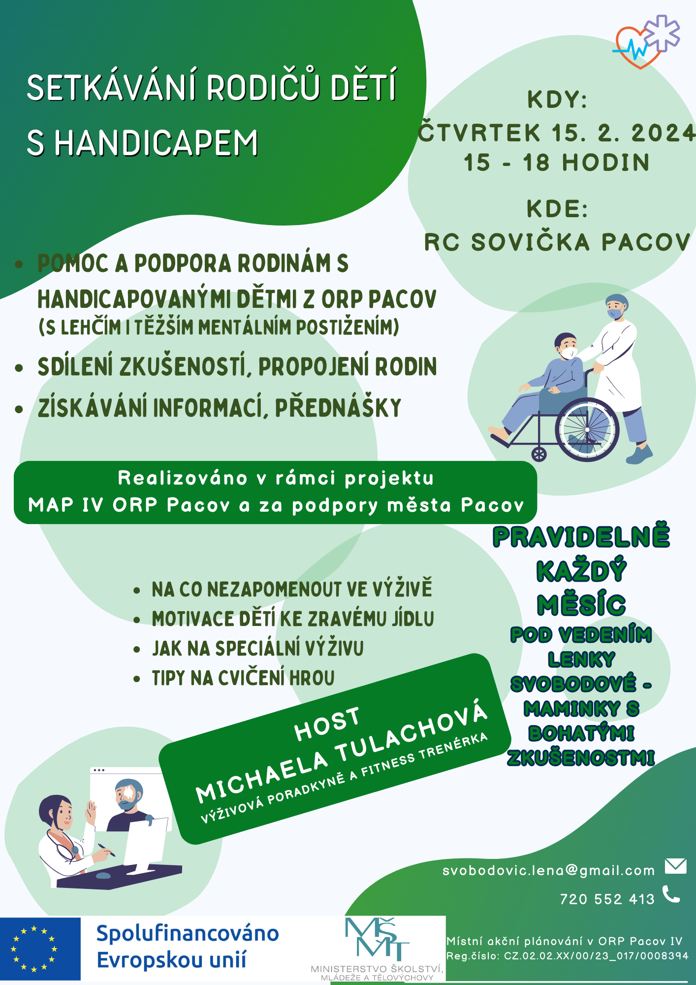 AKCE PRO RODIČE, pravidelné setkávání rodičů dětí s handicapem z ORP Pacov, v RC Sovička Pacov, od 13.00 hodin, PLAKÁT